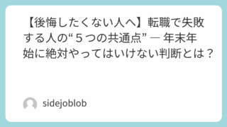 転職で後悔する人には共通点がある。この記事では、年末に転職を考える人がやってしまいがちな5つの失敗パターンと、成功するための判断基準をわかりやすく解説します。