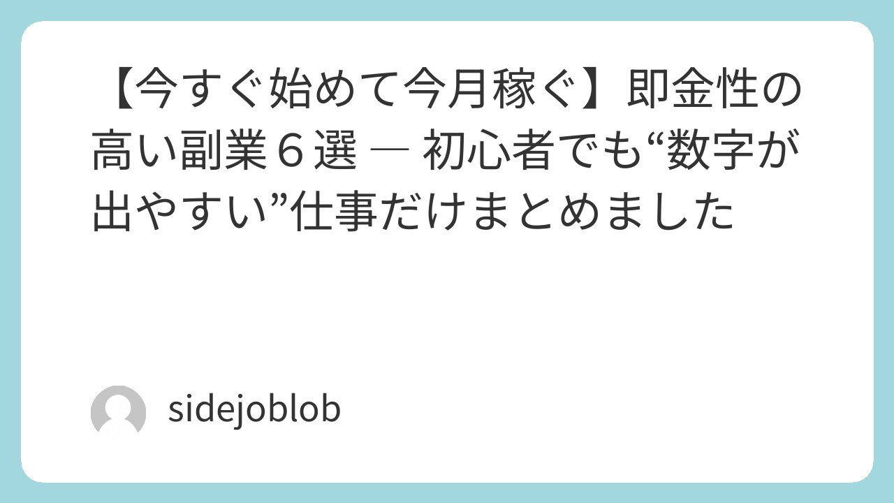 【今すぐ始めて今月稼ぐ】即金性の高い副業6選 ― 初心者でも“数字が出やすい”仕事だけまとめました