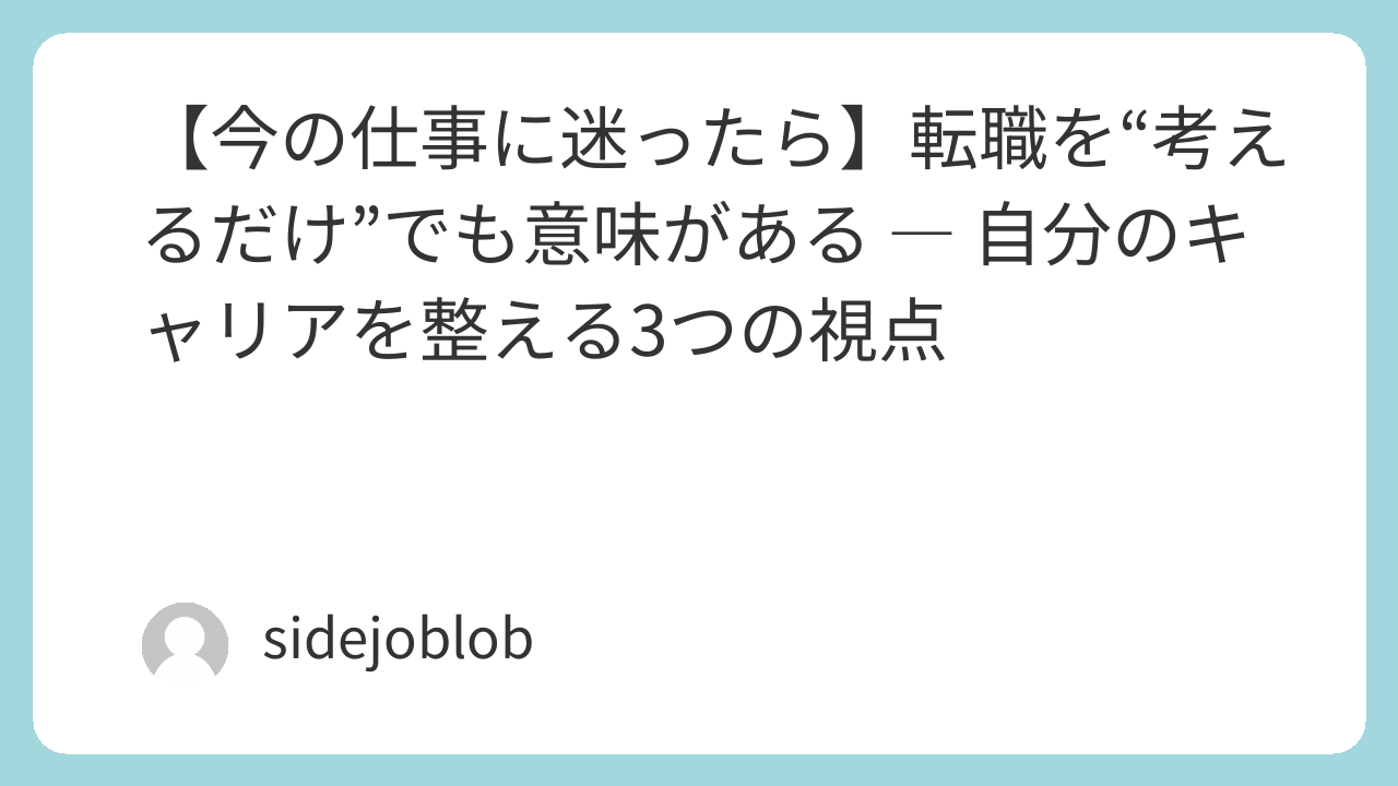 まとめ:“転職を考える”こと自体が、人生を見直すチャンス