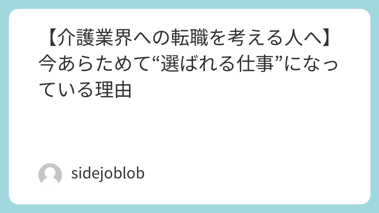 【介護業界への転職を考える人へ】今あらためて“選ばれる仕事”になっている理由