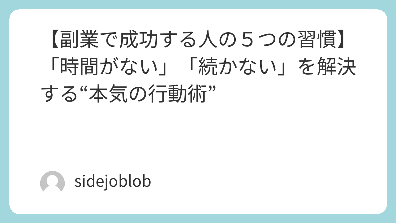 成功する人の最大の特徴は、副業を“予定”として扱うこと。