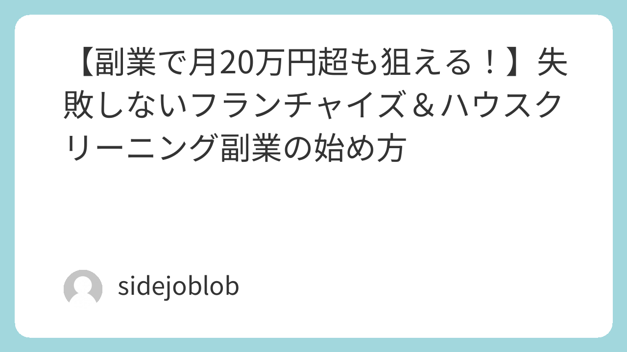 この記事では、「個人が副業でハウスクリーニングを始めて成功する方法」を、フランチャイズモデルを活用しながら実践的に解説していきます。