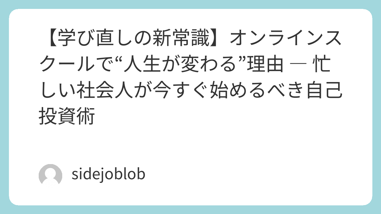 【学び直しの新常識】オンラインスクールで“人生が変わる”理由 ― 忙しい社会人が今すぐ始めるべき自己投資術