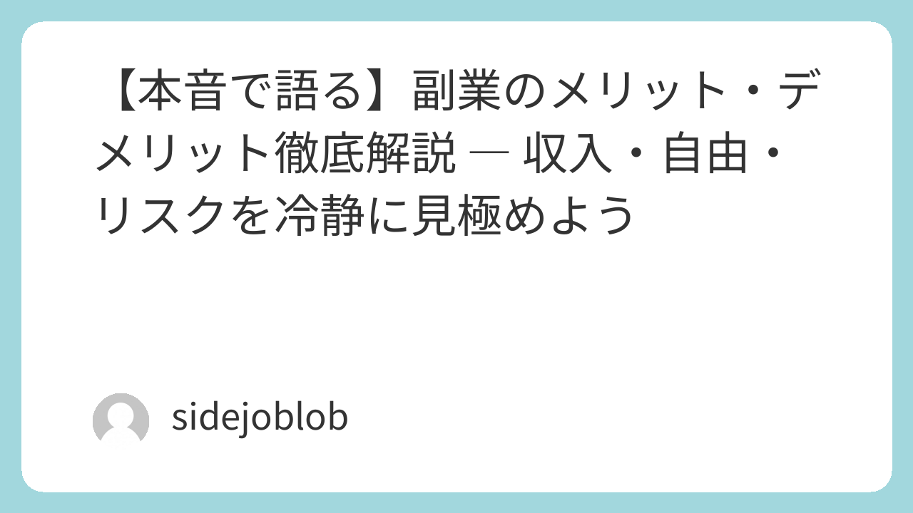 💡 **「好き×得意×小さく稼ぐ」**が、最も長く続く副業の形です。
