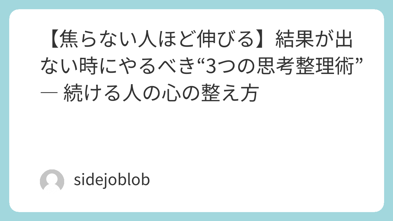 この記事では、焦りを力に変える「3つの思考整理術」を紹介します。