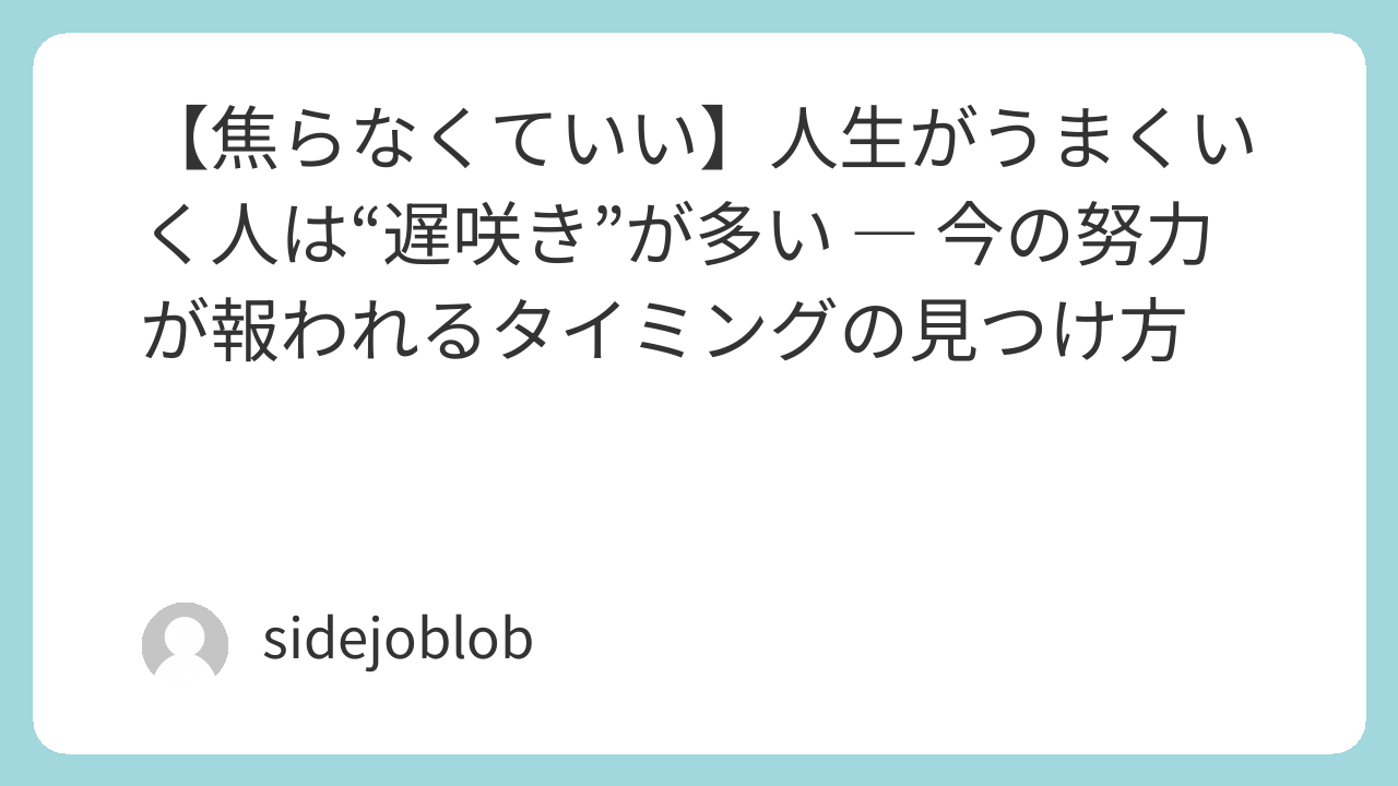 - 遅咲きの人ほど、基盤が強く、長く成功する
