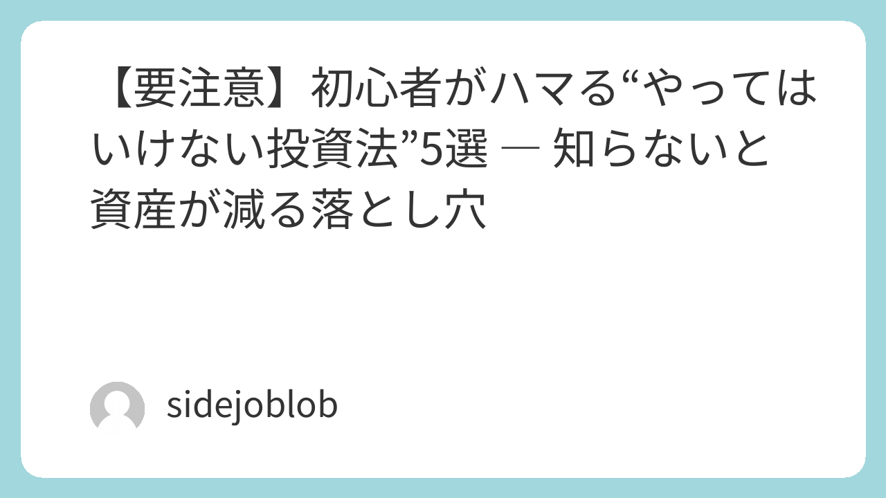 この記事では、初心者が陥りやすい“5つのやってはいけない投資法”をわかりやすく解説します。