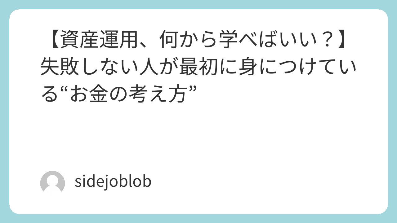 【資産運用、何から学べばいい?】失敗しない人が最初に身につけている“お金の考え方”