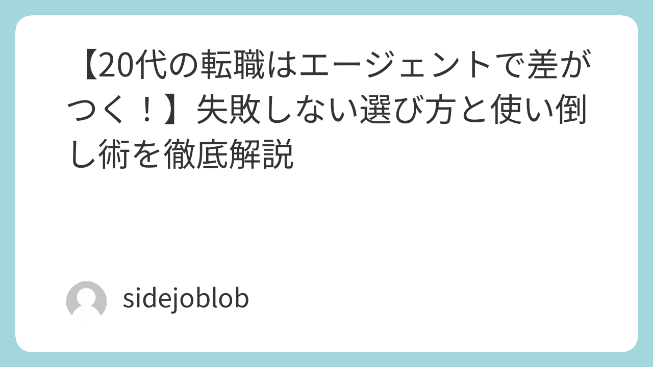 この記事では、20代の転職にエージェントを使うべき理由と、効果的な使い方を詳しく解説します。