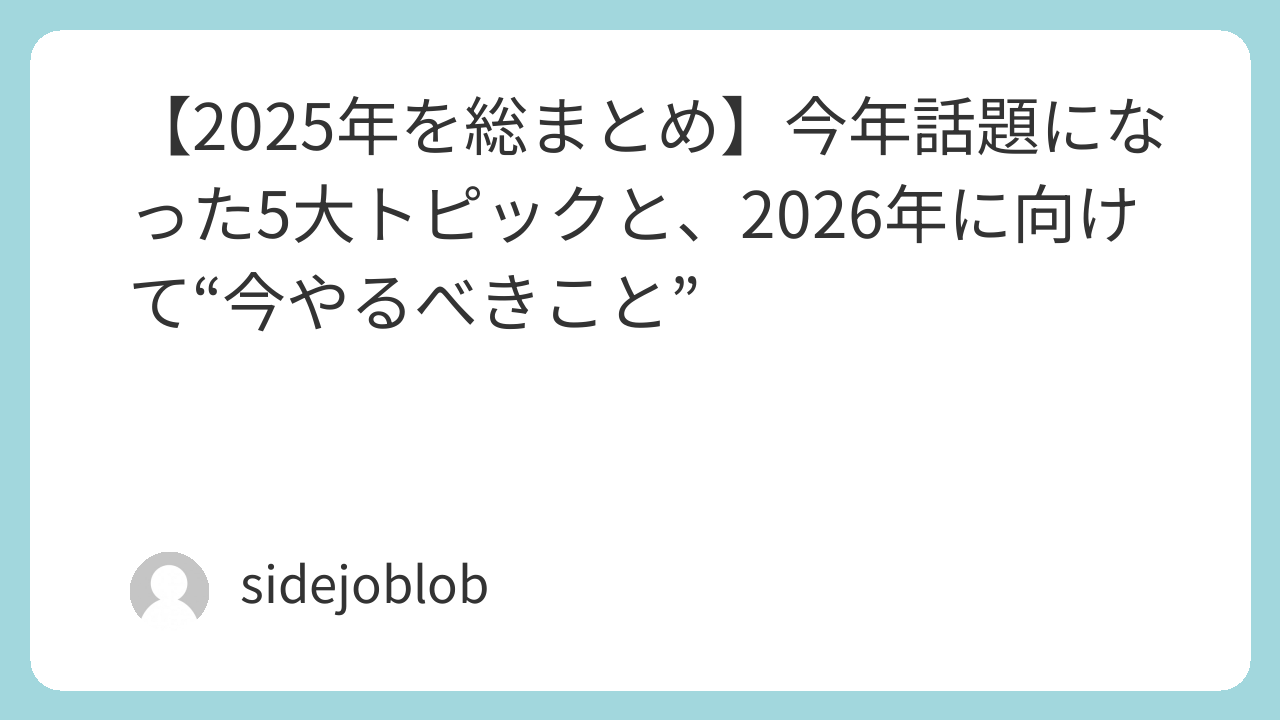 🔥 2025年の学び → 2026年に向けて今やるべきこと