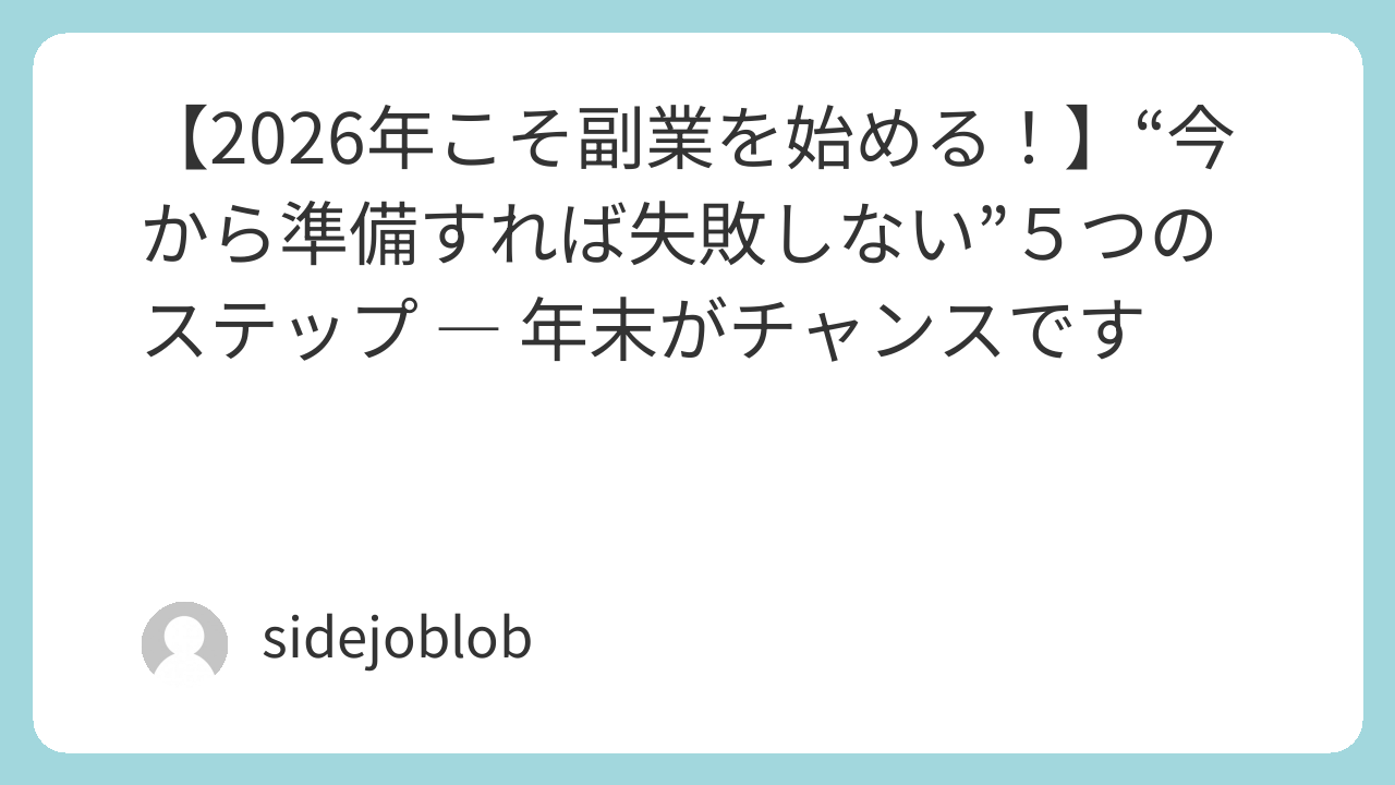 【2026年こそ副業を始める!】“今から準備すれば失敗しない”5つのステップ ― 年末がチャンスです