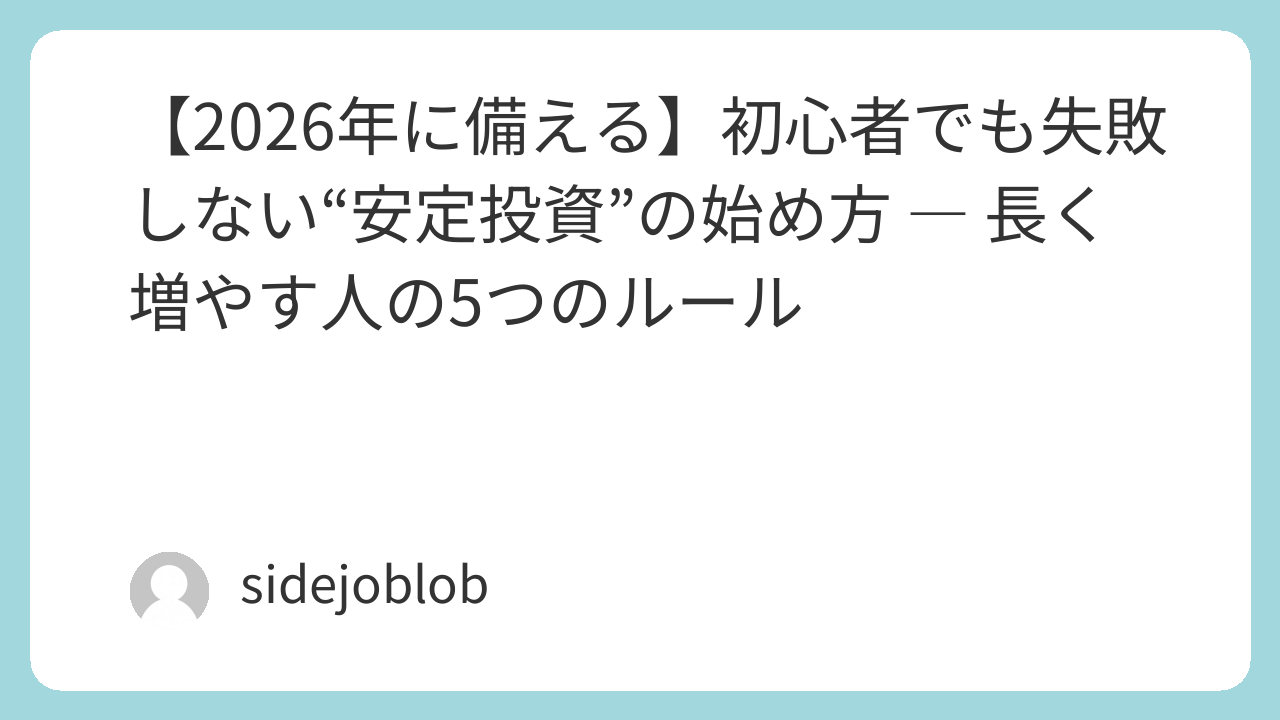 【2026年に備える】初心者でも失敗しない“安定投資”の始め方 ― 長く増やす人の5つのルール