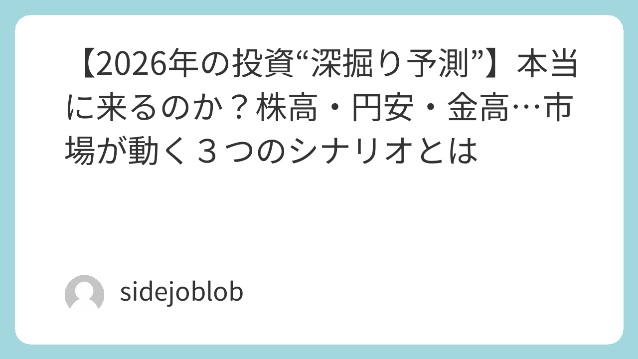 【2026年の投資“深掘り予測”】本当に来るのか?株高・円安・金高…市場が動く3つのシナリオとは