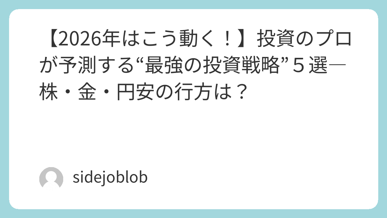 初心者でも実践できる「2026年の投資戦略」5つ を徹底解説します。