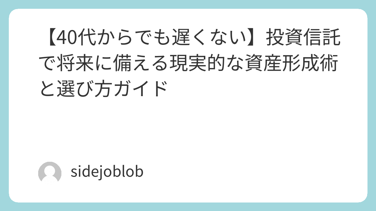 【40代からでも遅くない】投資信託で将来に備える現実的な資産形成術と選び方ガイド