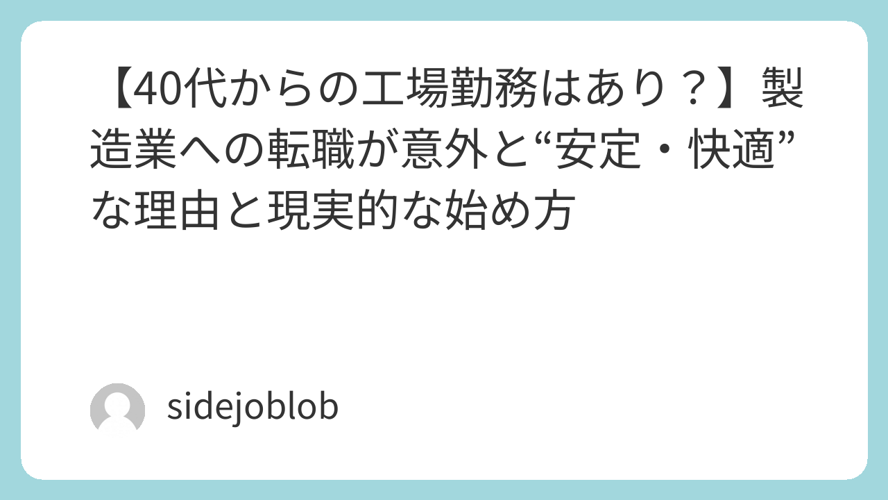 まとめ:40代だからこそ、工場・製造業は「安定・実直・地に足のついた選択肢」