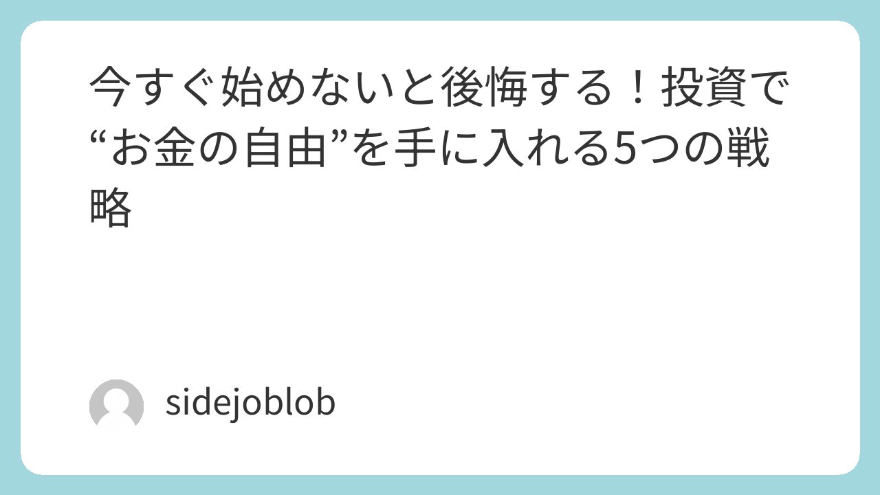 これら5つの戦略をバランスよく取り入れることで、投資がただのリスクテイクではなく、「お金の自由」を作るツールになります。