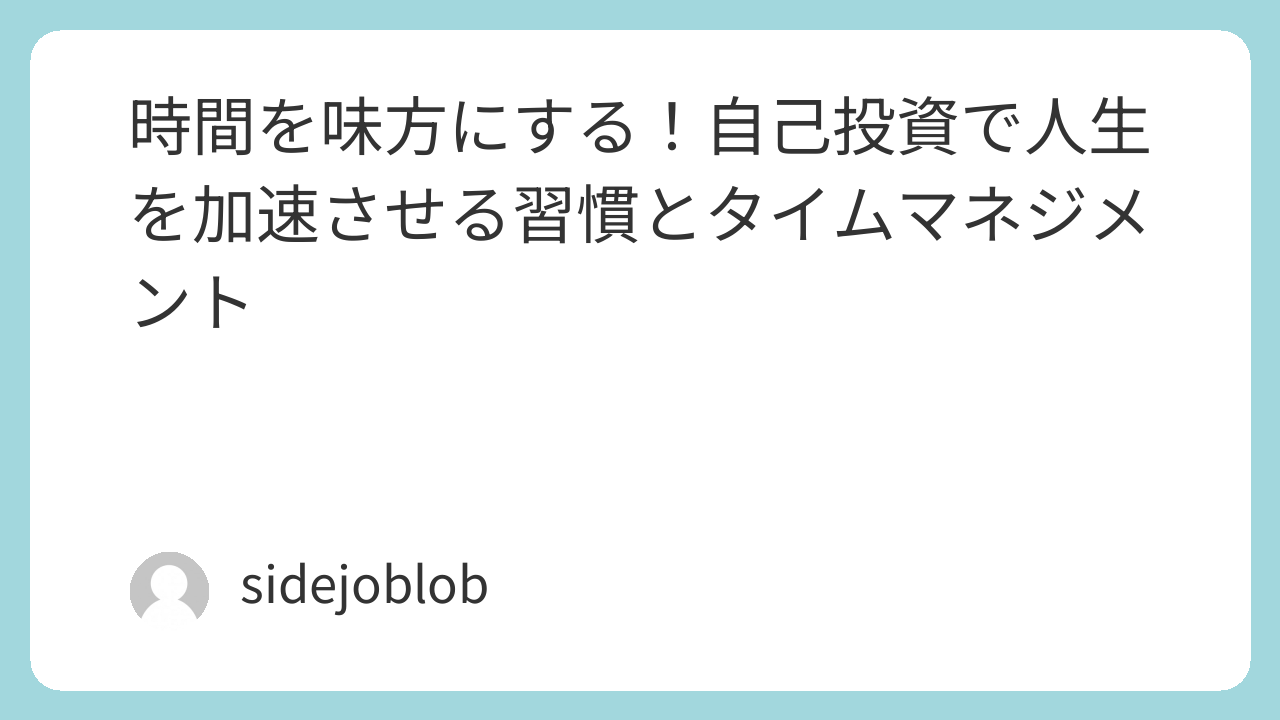 自己投資と時間管理は、あなたの人生を加速させるための最も強力な武器です。