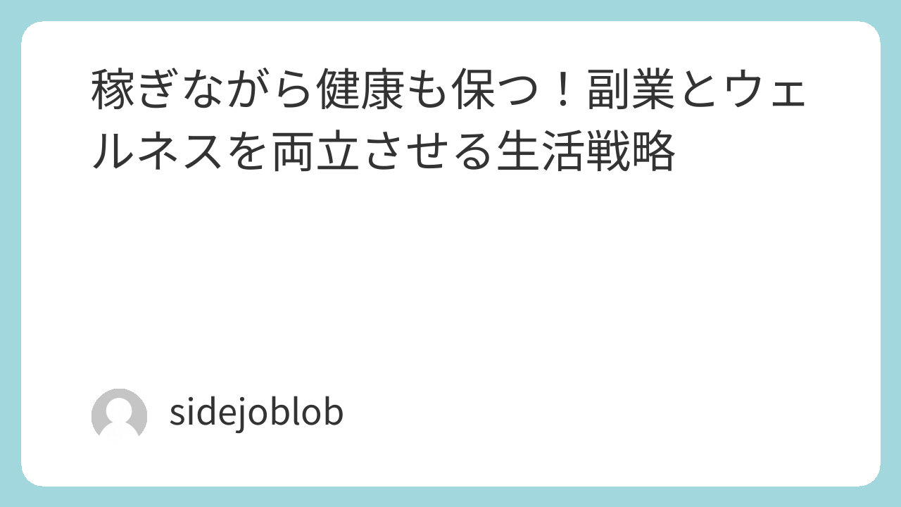 稼ぐことは大切ですが、健康を犠牲にするとコストが大きく跳ね返ってきます。副業とウェルネスを両立させる習慣は、長く働き続けるための土台となります。