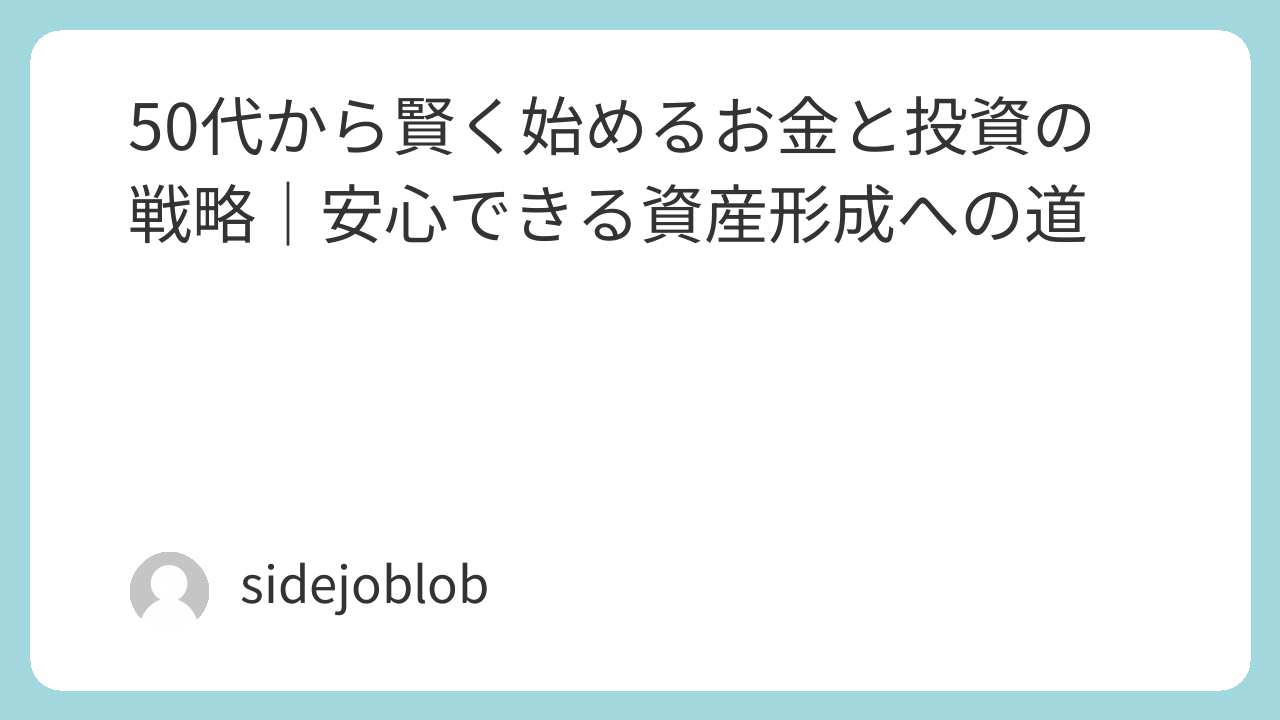 - 「50代での投資は遅い」は誤解。むしろ知識と判断力で差をつけやすい時期です。