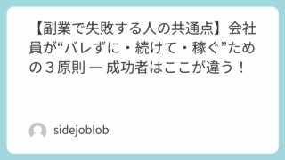 【副業で失敗する人の共通点】会社員が“バレずに・続けて・稼ぐ”ための3原則 ― 成功者はここが違う!